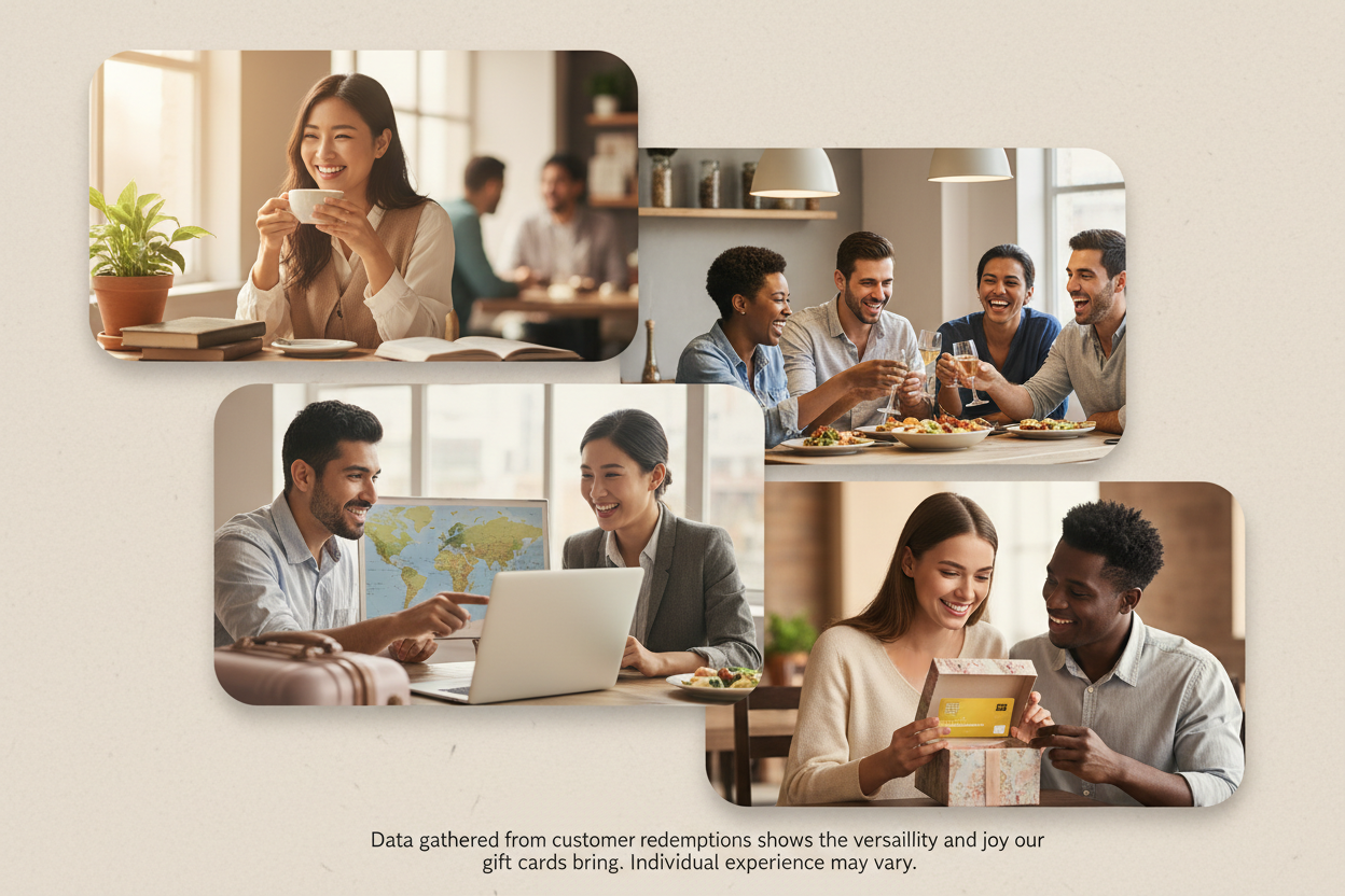 Data gathered from customer redemptions shows the versatility and joy our gift cards bring. Individual experience may vary.